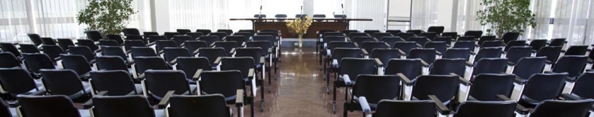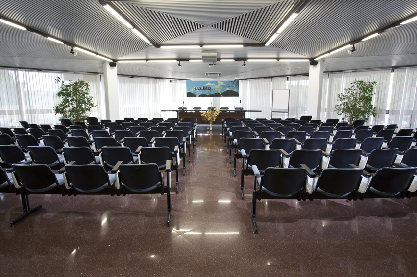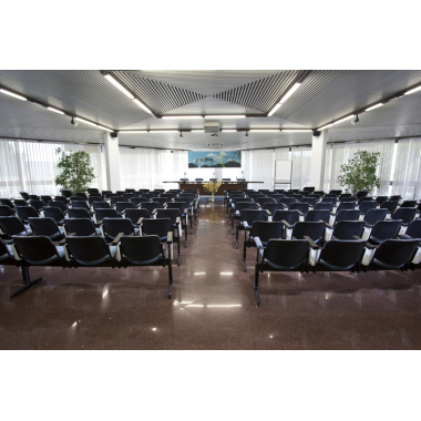 Platform with places for 7 speakers, folding chair desks, air conditioning, telephone, fax and photocopy service, e-mail service, internet wi-fi connection, audio and video conference, projection equipment, cordless and pocket microphones, overhead projector, flip board, folders and pens, interpreter service, hostess service, reception, wardrobe service, bar and restaurant service, possibility of organising coffee break, buffet and lunch services, etc., lift, large parking area free of charge.